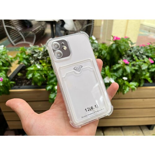 Чехол на iPhone 12 / Айфон 12 с картхолдером и усиленными углами, прозрачный