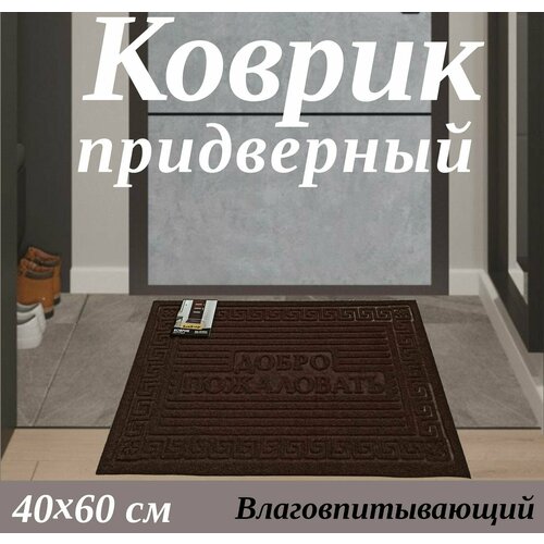 Коврик придверный "Добро пожаловать" 40х60 см с резиновой основой, впитывающий, грязезащитный