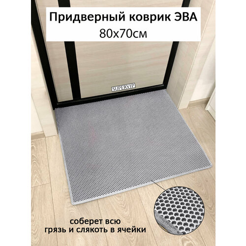 Придверный коврик ЭВА 80х70 см в прихожую и коридор. Ячеистый коврик для сушки обуви. Цвет светло-серый.