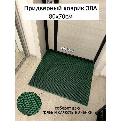 Придверный коврик ЭВА 80х70 см в прихожую и коридор. Ячеистый коврик для сушки обуви. Цвет темно-зеленый.