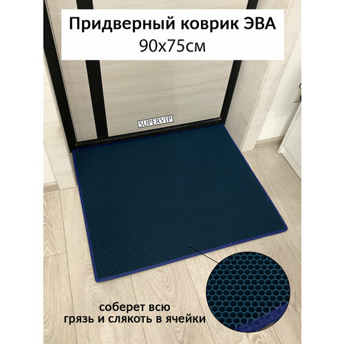 Придверный коврик ЭВА 90х75 см в прихожую и коридор. Ячеистый коврик для сушки обуви. Цвет темно-синий.