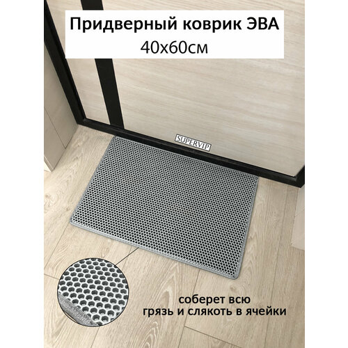 Придверный коврик ЭВА 60х40 см в прихожую и коридор. Ячеистый коврик для сушки обуви. Цвет светло-серый.