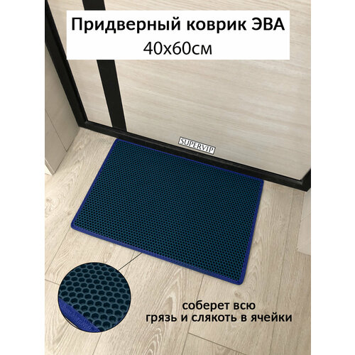 Придверный коврик ЭВА 60х40 см в прихожую и коридор. Ячеистый коврик для сушки обуви. Цвет темно-синий.