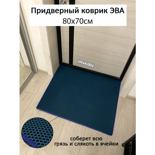 Придверный коврик ЭВА 80х70 см в прихожую и коридор. Ячеистый коврик для сушки обуви. Цвет темно-синий.