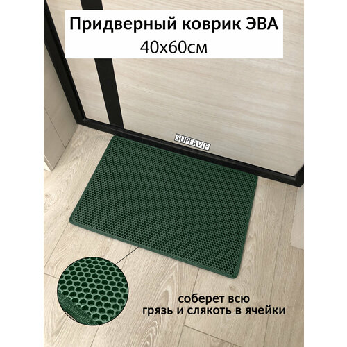 Придверный коврик ЭВА 60х40 см в прихожую и коридор. Ячеистый коврик для сушки обуви. Цвет темно-зеленый.