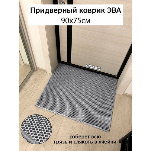 Придверный коврик ЭВА 90х75 см в прихожую и коридор. Ячеистый коврик для сушки обуви. Цвет светло-серый.