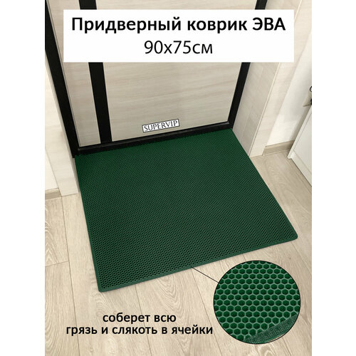 Придверный коврик ЭВА 90х75 см в прихожую и коридор. Ячеистый коврик для сушки обуви. Цвет темно-зеленый.
