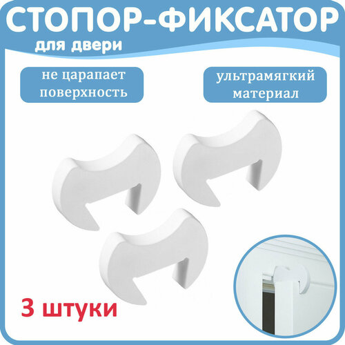 Защитная накладка фиксатор для двери от детей для дома 3 штуки белая