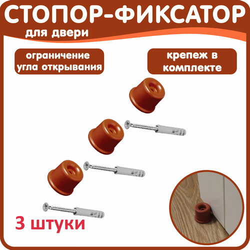 Стопор-фиксатор для двери круглый от детей, ограничитель напольный коричневый 3 штуки