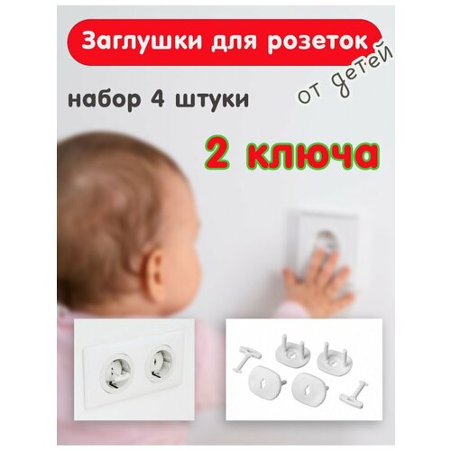 Заглушки для розеток от детей набор 4 штуки , 2 ключа