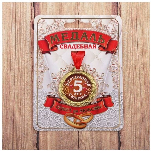 Сувенирные медали Медаль маленькая "Деревянная свадьба. 5 лет вместе" (на открытке, d = 4 см)