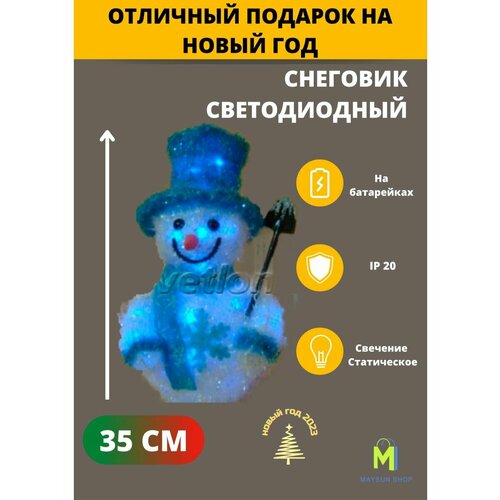 Светильник фигура декор "Снеговик в синем" под елку 35см LED белый