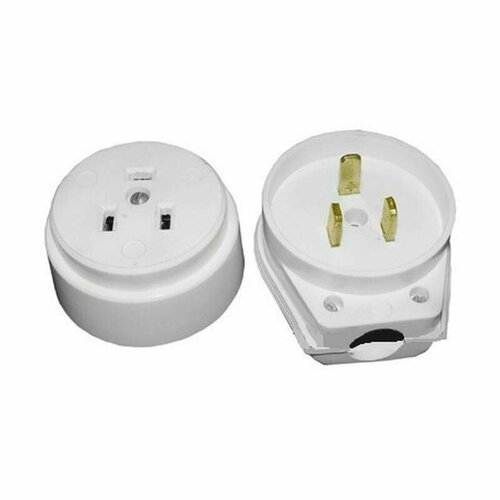 Разъем РШ/ВШ 32А (белая) 1 фазн открытой установки (СЭ РВШ 32-002/220) 2-хпол с заземляющим контактом С000882 вилка+розетка "Свет СПб"