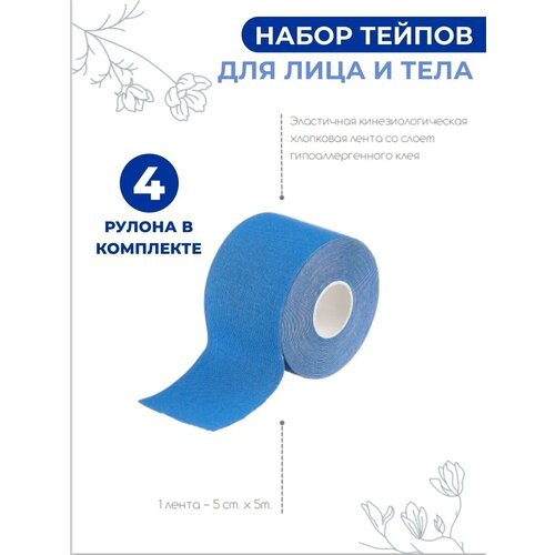 Набор кинезио тейпов SVEZO для тела 5 см х 5м, голубой, 4 рулона