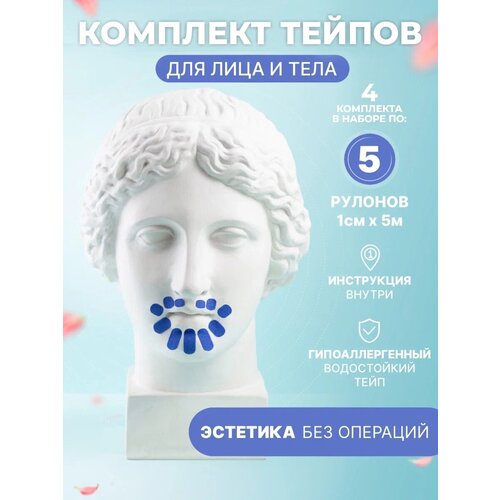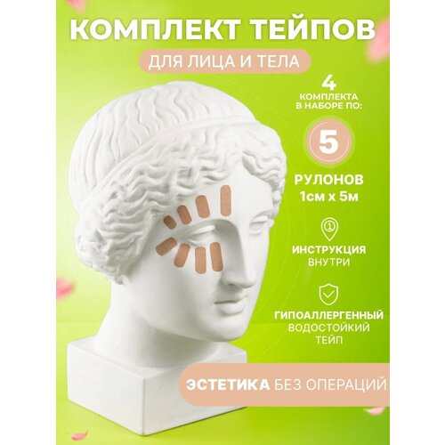 SVEZO Набор кинезио тейпов для лица и тела 1 сантиметр х 5 метров, 5 лент