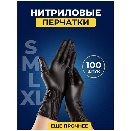 Комплект одноразовых чёрных нитриловых перчаток SVEZO - 100шт, 50 пар, размер M