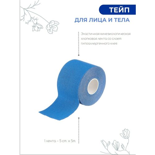 Набор из 5 кинезио тейпов SVEZO для лица и тела, 1 см х 5 метров, голубой
