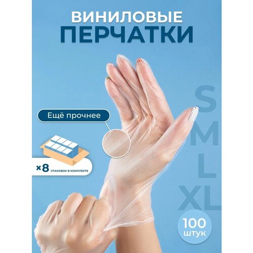 Сет из 8 упаковок виниловых одноразовых перчаток, размер S