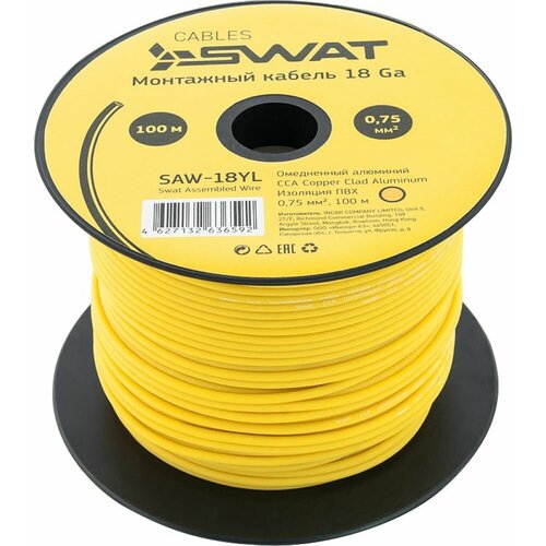 SWAT монтажный кабель 18Ga/0,75мм2 желтый, ССА, 100м, компактная катушка SAW-18YL