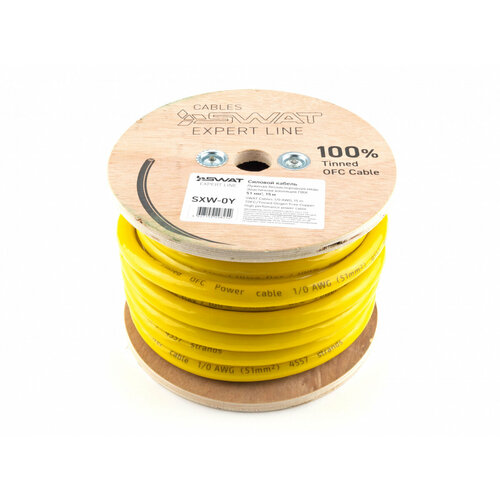 Силовой кабель SWAT SXW-0Y / 0Ga / 50мм2 / желтый / луженая медь / 15 м / метровая разметка