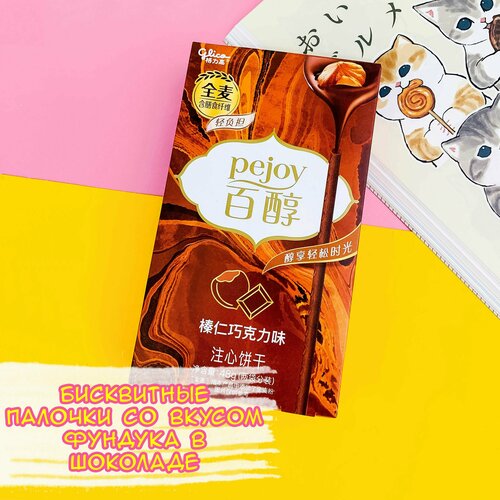 Бисквитные палочки Pocky Pejoy Фундук в шоколаде / Хрустящие палочки с начинкой, Китай 48 гр.