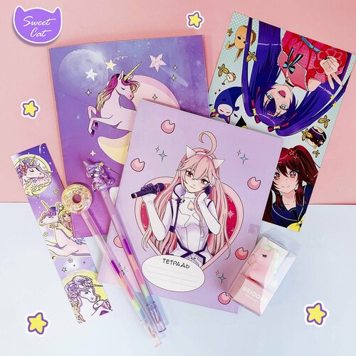 Малый подарочный канцелярский набор для девочки Аниме / Sweet Cat Shop