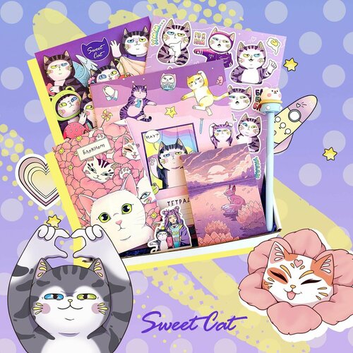 Канцелярский набор для школы Sweet Cat Shop / Подарочный набор Котики