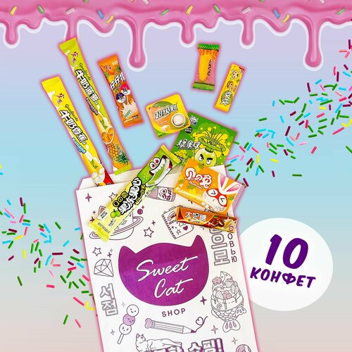 Sweet Cat Shop / Кислые конфеты / Азиатский бокс / Набор кислых сладостей Подарок на 8 марта 23 февраля 14 февраля