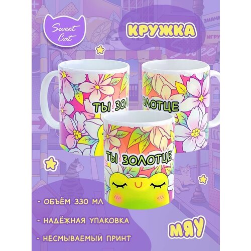 Кружка для чая, кружка с принтом Ты золотце, лучший подарок, Sweet Cat Shop 330 мл.