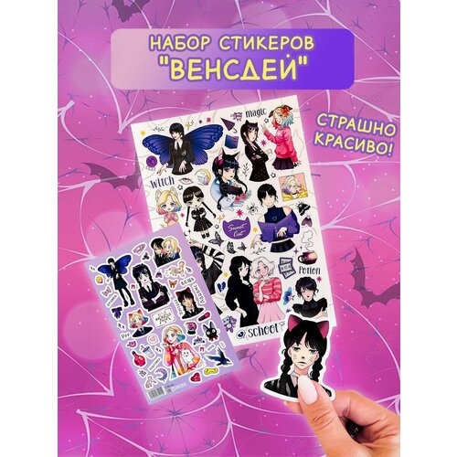 Наклейки аниме стикеры на телефон Уэнсдей Аддамс