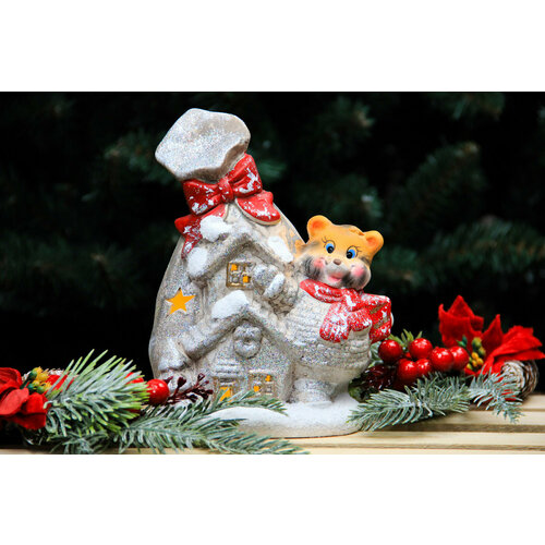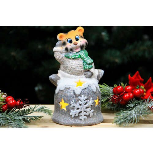 Статуэтка "Тигр и сугроб", 16см, светящаяся, керамика