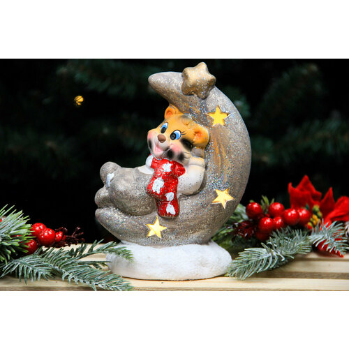 Статуэтка "Тигр на луне", 17см, светящаяся, керамика