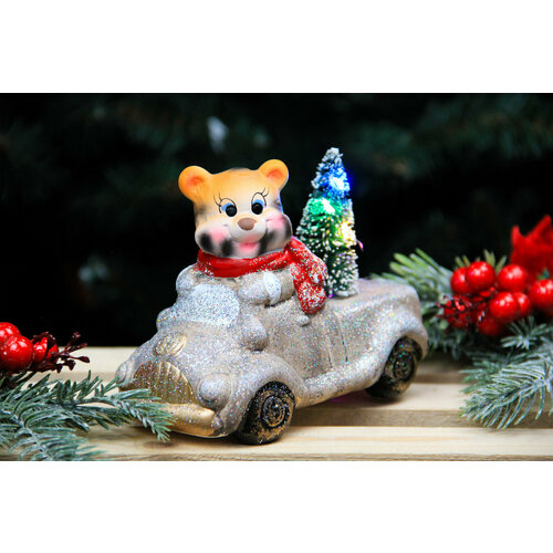 Статуэтка "Тигр на машине", 14см, светящаяся, керамика