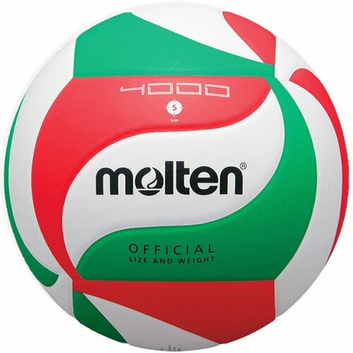 Мяч волейбольный MOLTEN V5M4000X размер 5, 18 панелей, синтетическая кожа ПУ, клееный, бело-красно-зеленый
