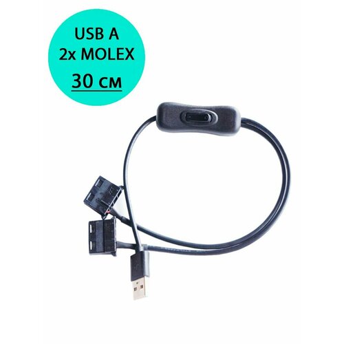 Переходник USB A - 2х MOLEX (2 контакта) с выключателем 30см