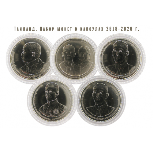 Таиланд Набор из 5 монет в капсулах 20 бат 2018 - 2020 г.