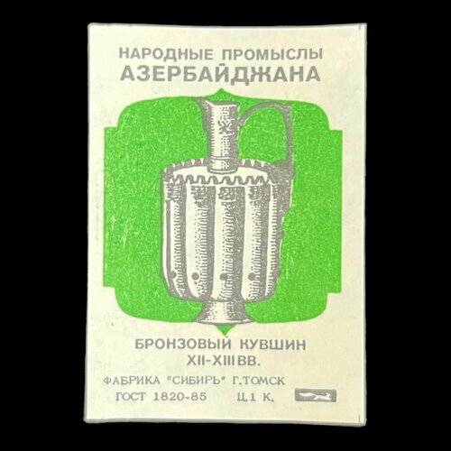 Этикетка коллекционная от советского. Народные промыслы Азербайджана. Бронзовый кувшин XII-XIIIв. в. Сделано в СССР