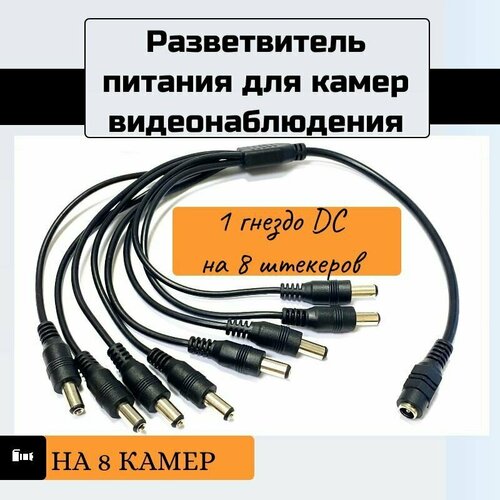 Разветвитель питания DC для камер видеонаблюдения 1 гнездо DC на 8 штекеров (штекер 2,1х5,5)