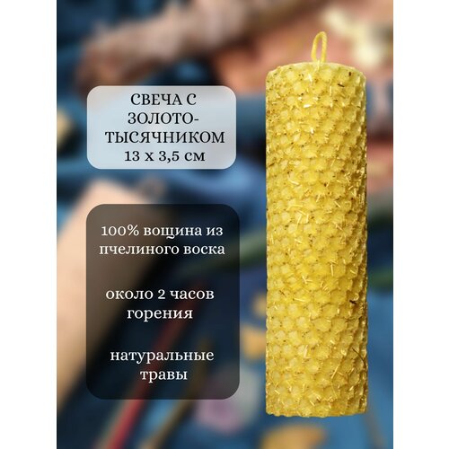Травяная свеча из вощины с золототысячником (финансовое благополучие) / 2 часа горения