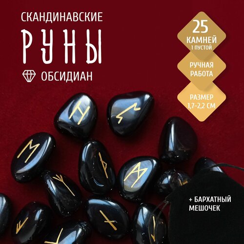 Скандинавские руны для гадания из камня / Обсидиан, натуральный камень / 1,7-2,2 см