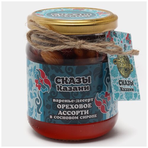 Варенье-десерт "Ореховое ассорти" в сиропе из сосновых шишек натуральное органическое (фундук, грецкий орех, миндаль), 300 грамм / Сказы Казани