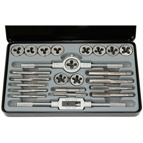 Набор метчиков и плашек М5 - М12, метрическая резьба, 24 пр техрим T030003