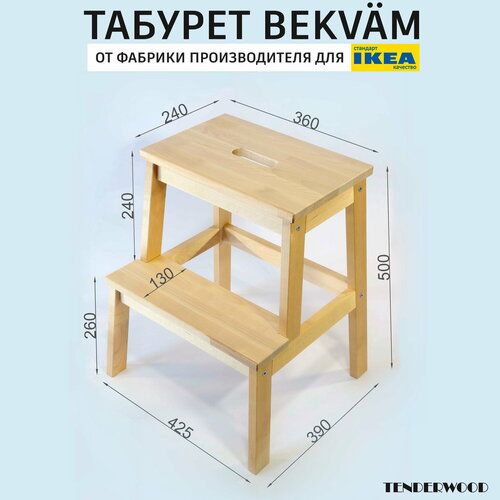 Стремянка BEKVÄM беквэм. 100% массив берёзы, 2 ступени. Высота: 50 см. Нагрузка: до 120 кг Покрытие: масло. Цвет: светлый орех