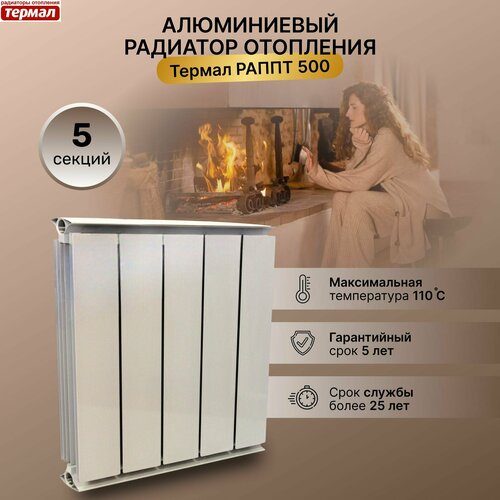 Алюминиевый, секционный радиатор отопления Термал РАППТ-500 5 секций, легкая и тонкая батарея отопления с высокой теплоотдачей и боковым подключением