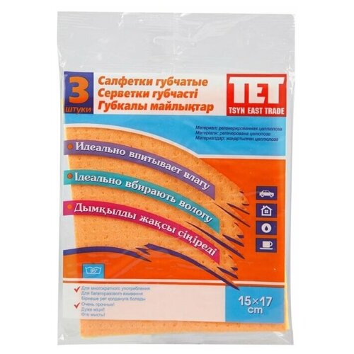 Салфетки губчатые TET Tsyn East Trade 15 х 17 см, мультицвет, 3 шт.