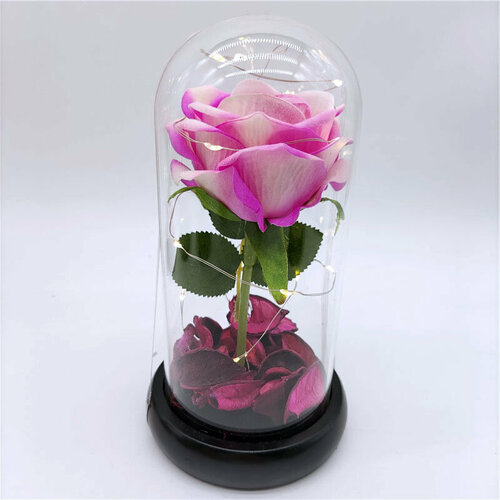 Роза в колбе со светодиодной подсветкой / розовая