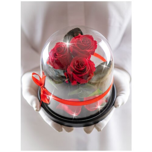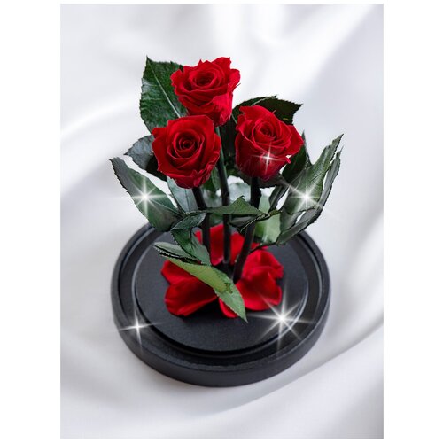 Живая роза в колбе Therosedome Трио Мини 3х4см Стабилизированная, цвет: красная