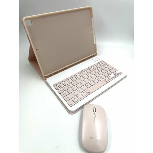 Чехол с беспроводной клавиатурой + мышка для Ipad 7,8,9 2019 2020 2021 (10.2) Розовый
