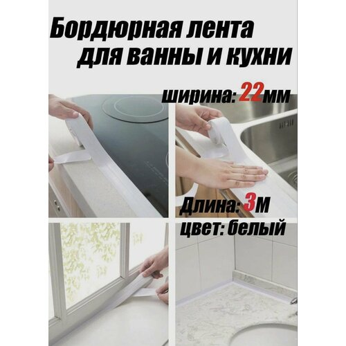 Водостойкая белая бордюрная лента для кухни и ванной самоклеящаяся 22ММ x 3М
