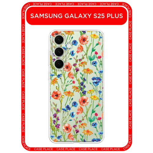 Чехол на Samsung Galaxy S25 Plus / Самсунг S25 Плюс с принтом Маки и васильки фон, прозрачный